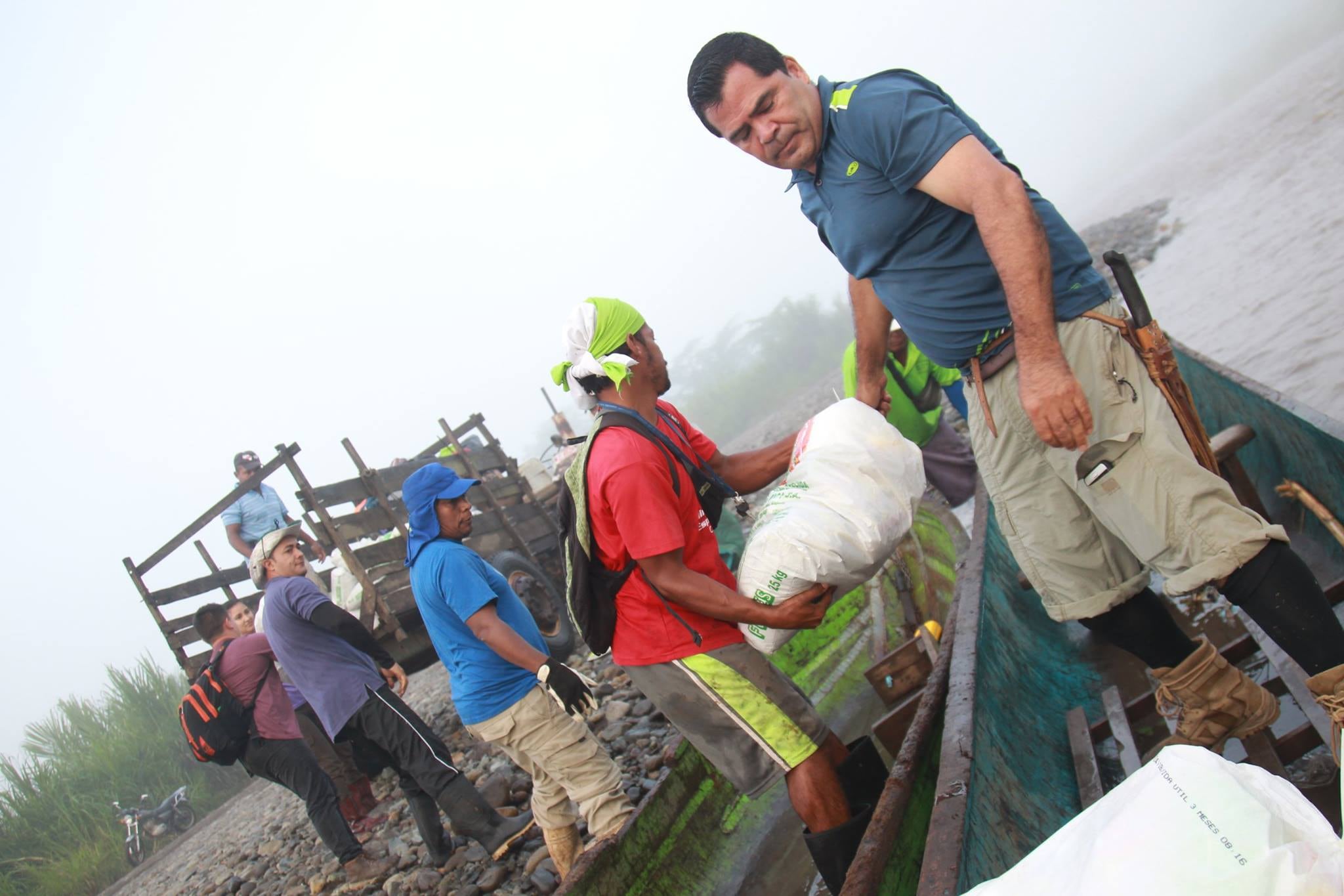 Mientras desciende hasta Bribrí, visita diferentes poblados y lleva víveres.