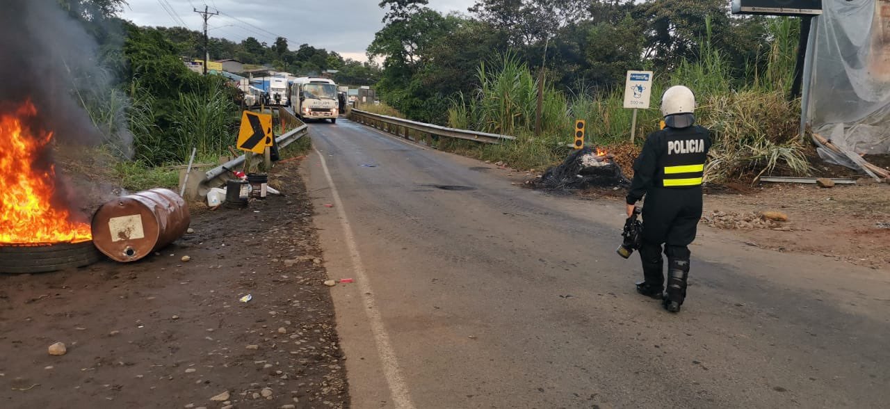 La Fuerza Pública realizó un operativo la madrugada de este domingo 11 de octubre para remover cinco bloqueos viales en San Carlos, Alajuela.