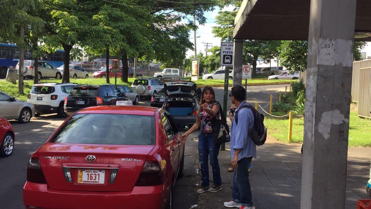 Saliendo de La Carpio, hacia otros sectores, la parada de buses del Hospital México fue tomada por los taxistas. Ellos ofrecen el servicio y cobran "lo que marque la maría". Esto también ocurre en el parque La Merced.