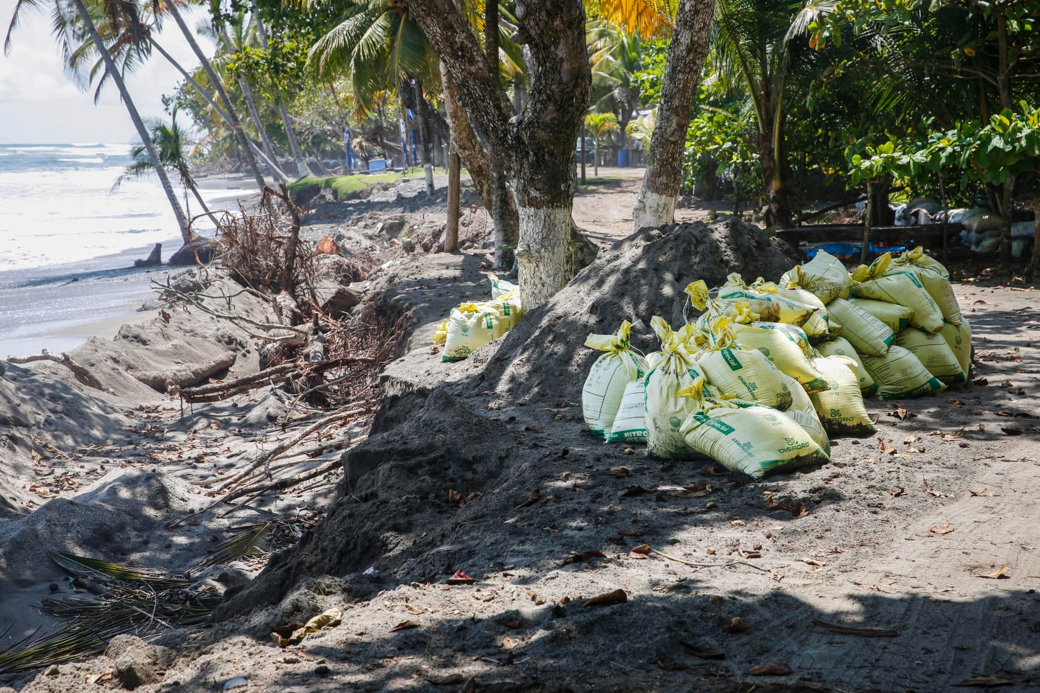 En Esterillos, la medida adoptada por la Municipalidad fue colocar sacos de arena y vertir una vagoneta de lastre sobre la playa.