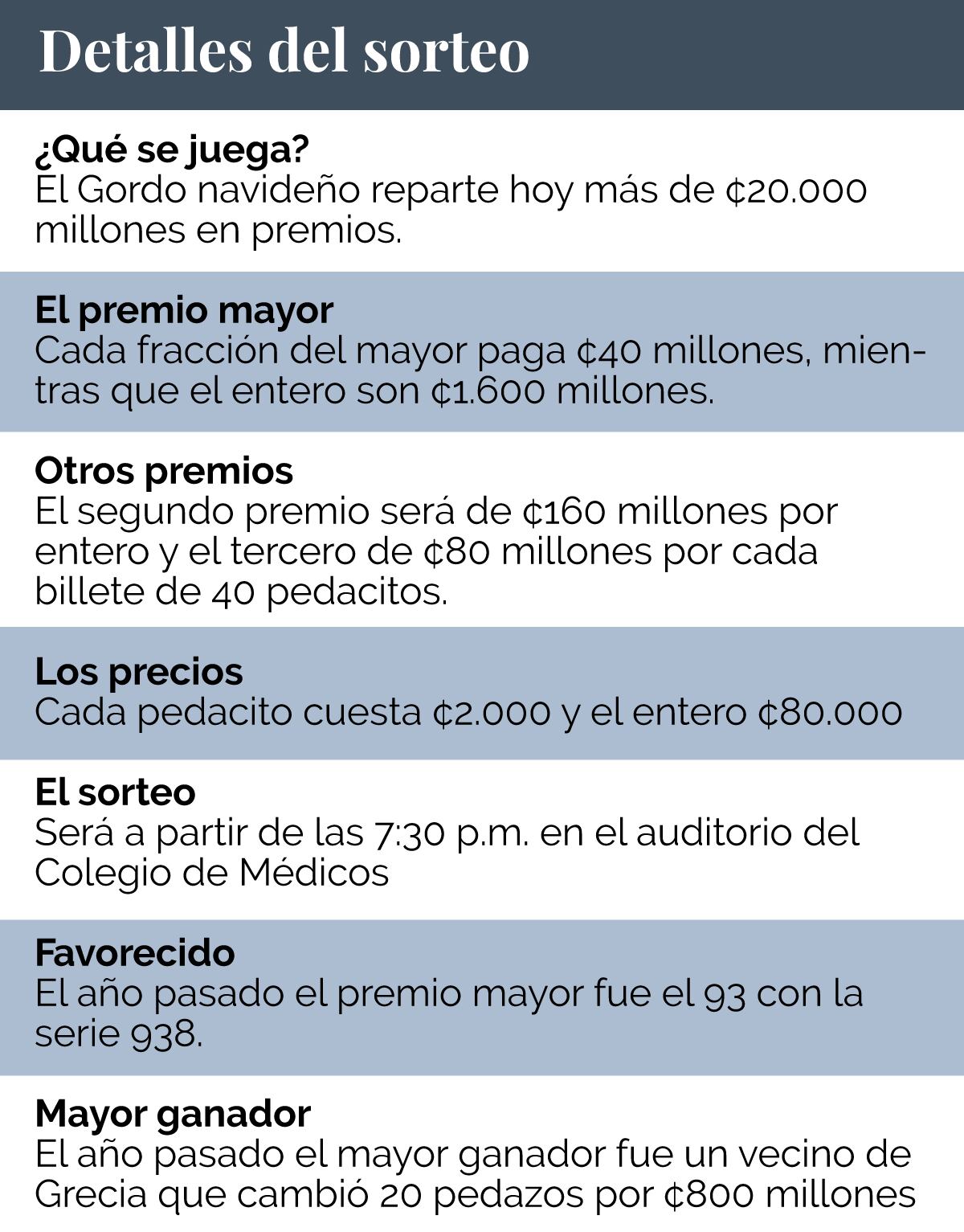 LEA MÁS: Premio mayor del Gordo navideño se mantiene en ¢1.600 millones por entero