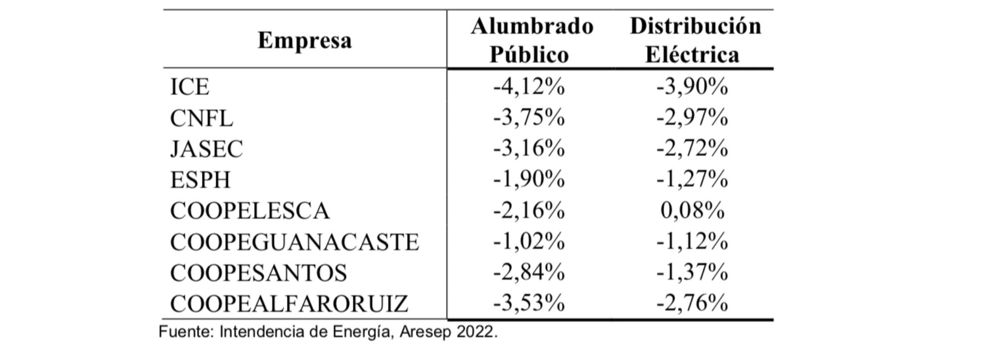 Esta es la propuesta de rebaja por empresa distribuidora de la Aresep: