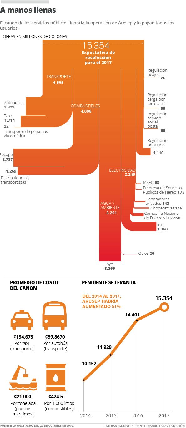 El canon de regulación es calculado por la Aresep, pero su aprobación final corresponde a la Contraloría de la República. El detalle de la recaudación por sector regulado se publicó en el diario oficial La Gaceta, el 26 de octubre.