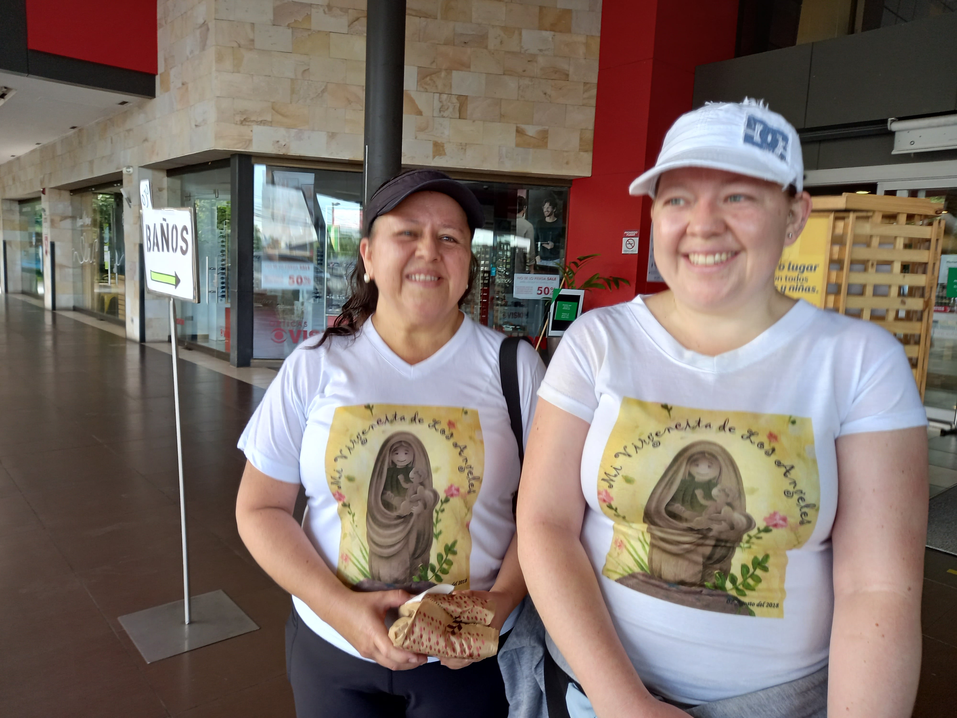 Sus camisetas, hechas especialmente para la ocasión de la primera romería en dos años, resaltaban dentro del mar de indumentarias de ejercicio que podían verse en la calle vieja hacia Tres Ríos, cantón de La Unión, trayecto obligatorio para una gran cantidad de personas que peregrinan hacia la basílica de Nuestra Señora de Los Ángeles, en Cartago. Decían, de forma cariñosa: “Mi Virgencita de Los Ángeles”.