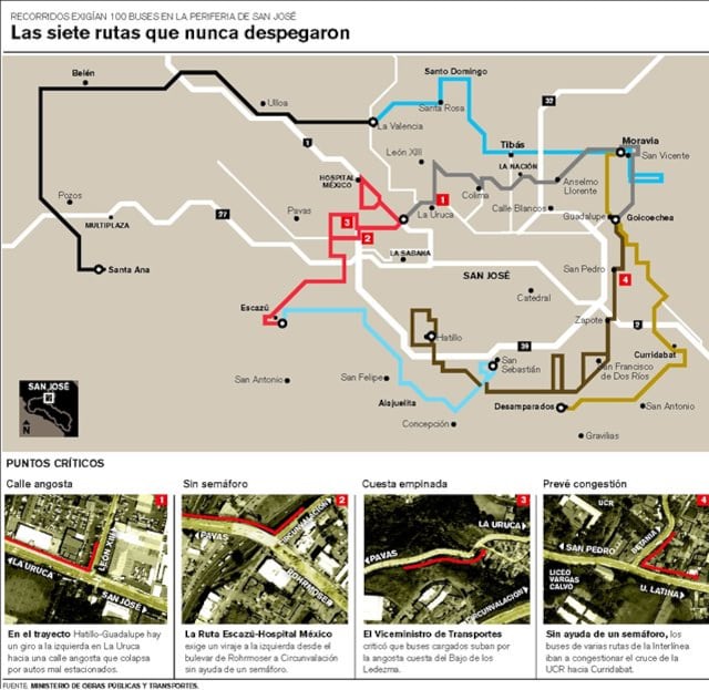 “Los recorridos de intersectoriales se habían planteado en 1999, cuando se hizo un estudio técnico para el MOPT. Han pasado 12 años desde entonces, y nunca se actualizó el crecimiento urbano”, declaró González.
