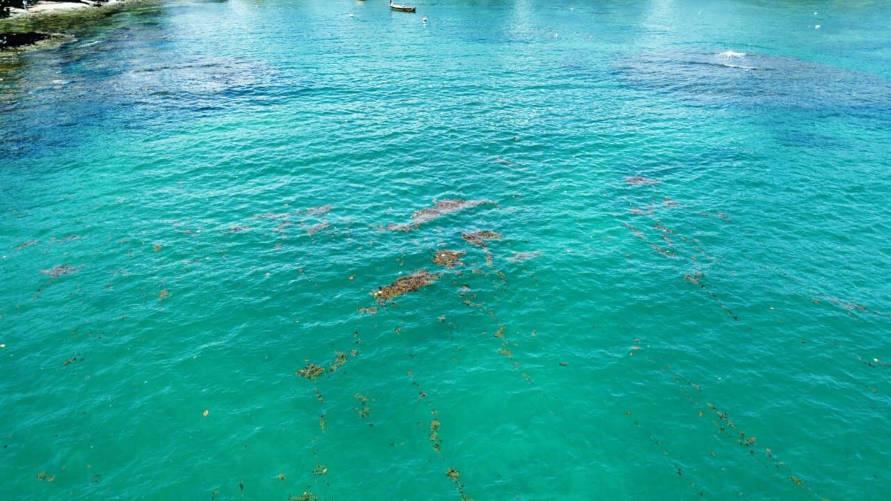 Desde tomas aéreas se observa cómo entre el coral se esconde importante cantidad de alga, que poco a poco sale a flote.