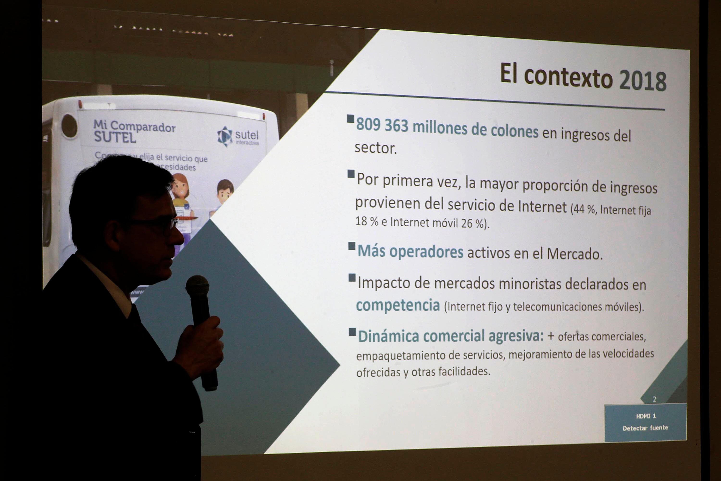 Gílberth Camacho, presidente del Consejo Directivo de la Sutel, caracterizó el 2018 como un año de reacomodo en el mercado móvil por causa de la saturación de líneas actual.