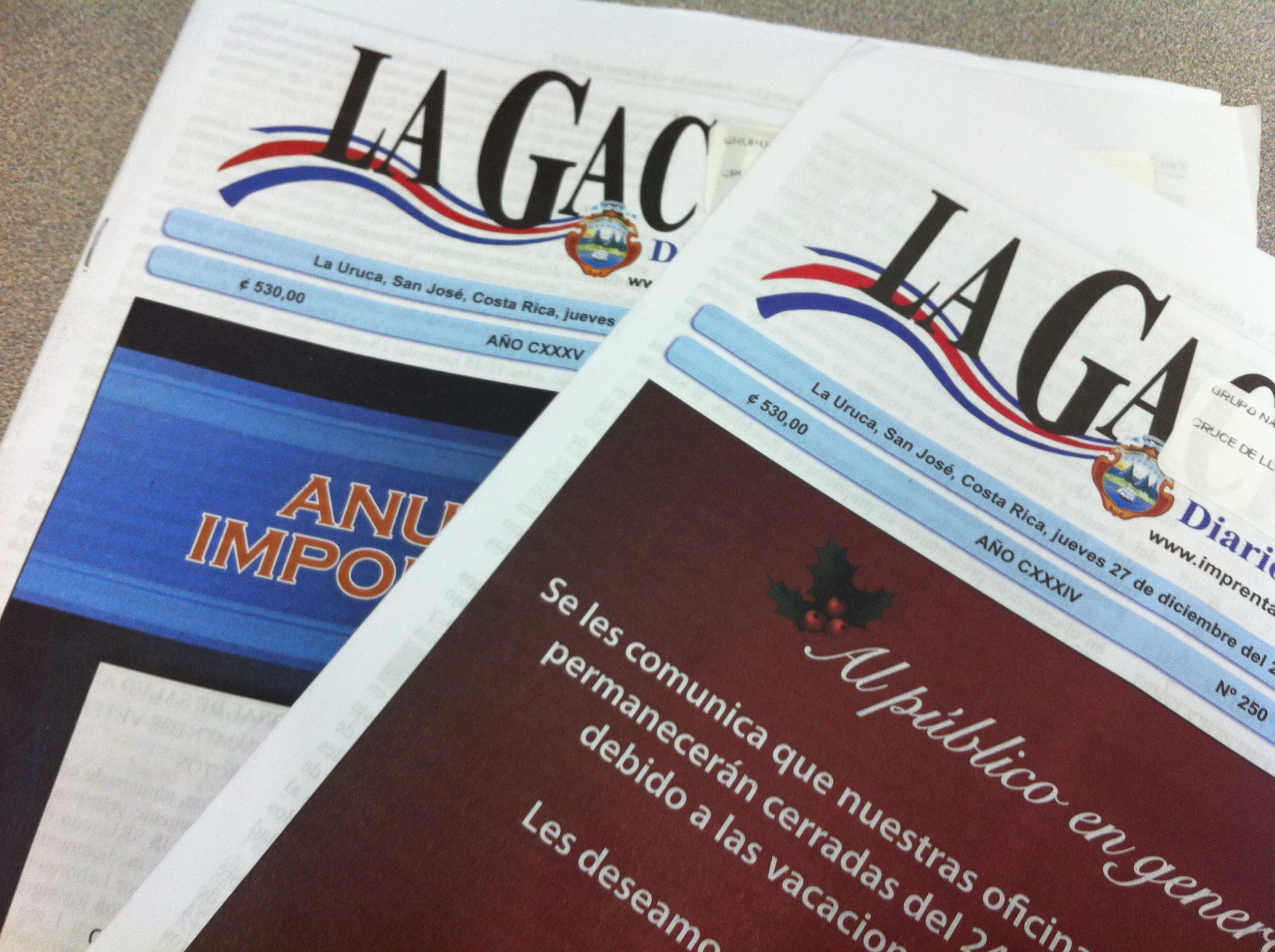 "El tema del papel significa contaminación al medio ambiente. Se están tomando decisiones de carácter administrativo. La oficina en el Registro Nacional, en Curridabat, se cerrará en agosto. No va a haber despidos porque, al migrar a La Gaceta digital, todo ese personal se ha capacitado para que forme parte del staff. Habrá gente que le explicará a los usuarios cuál es el procedimiento a seguir para accesar a nuestro servicios en web, ya que todo trámite se hará en línea", declaró Vargas.