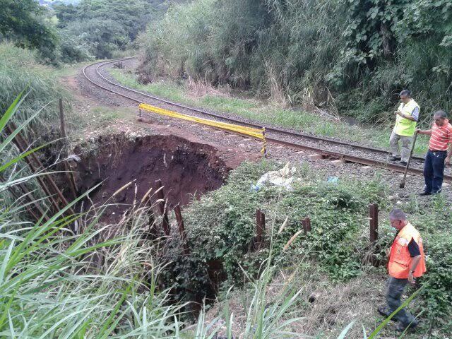 Las fuertes lluvias caídas en ese sector en los últimos días provocaron el movimiento de tierras que pone en riesgo la operación del tren.