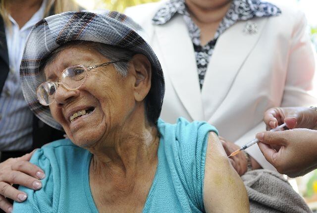Junto con ella, otros 20 adultos mayores hicieron fila y recibieron colaboración para protegerse contra tres tipos de influenza.
