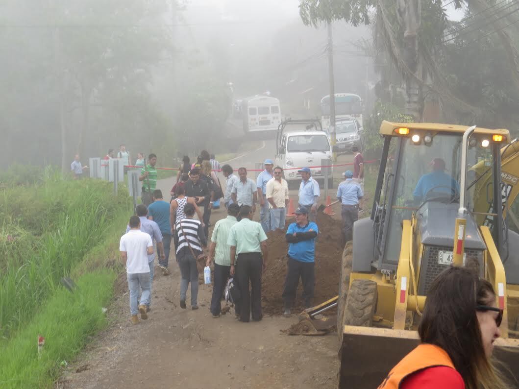 Norberto Matarrita jefe de la Fuerza Pública, dijo que anoche cerraron para prevenir cualquier situación de accidente mientras llegaban las autoridades correspondientes al hundimiento.La empresa de buses local, Transportes Aguilar Cruz, realizaba este viernes trasbordos de pasajeros, de manera que estos debían bajarse de un bus, caminar unos 200 metros y tomar otro.