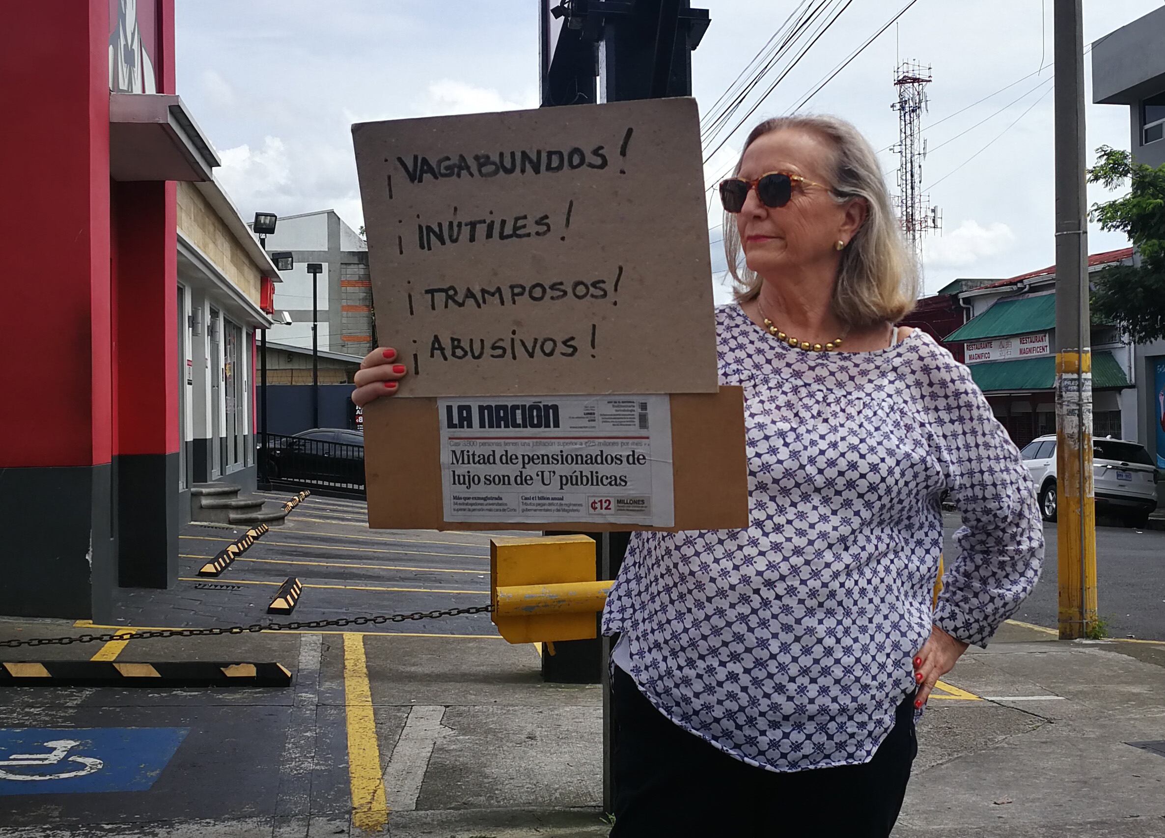 Una de las primeras indignadas fue Jimena Ugarte, vecina de La Pitahaya, quien el pasado 10 de setiembre salió al paseo Colón en San José con una pancarta dirigida a los huelguistas que iban a pasar por ahí en el primer día de manifestaciones