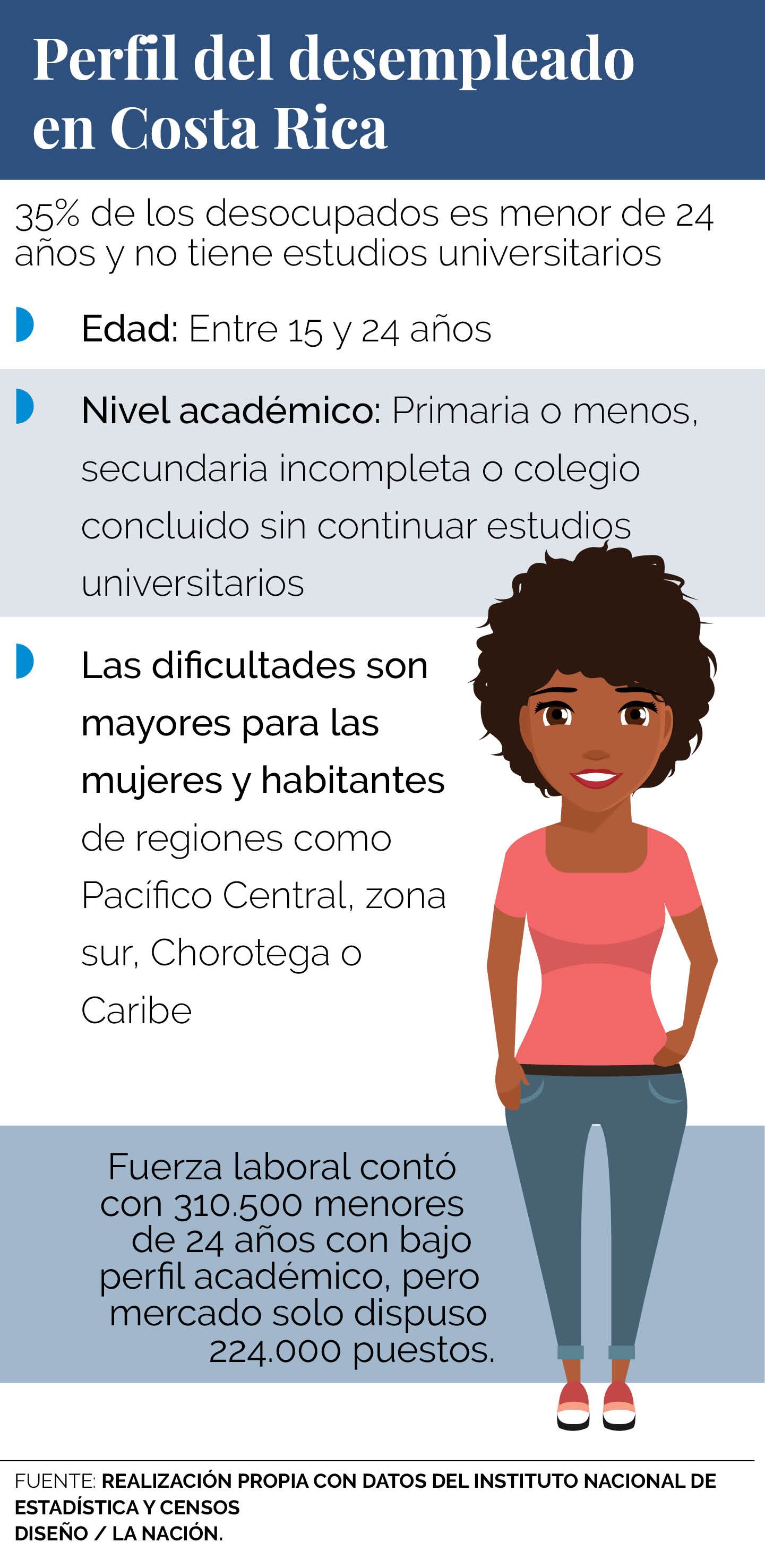Esta población representó el 35% de los desempleados en Costa Rica para 2018, de acuerdo con los datos promediados de las cuatro encuestas continuas de empleo de ese año.