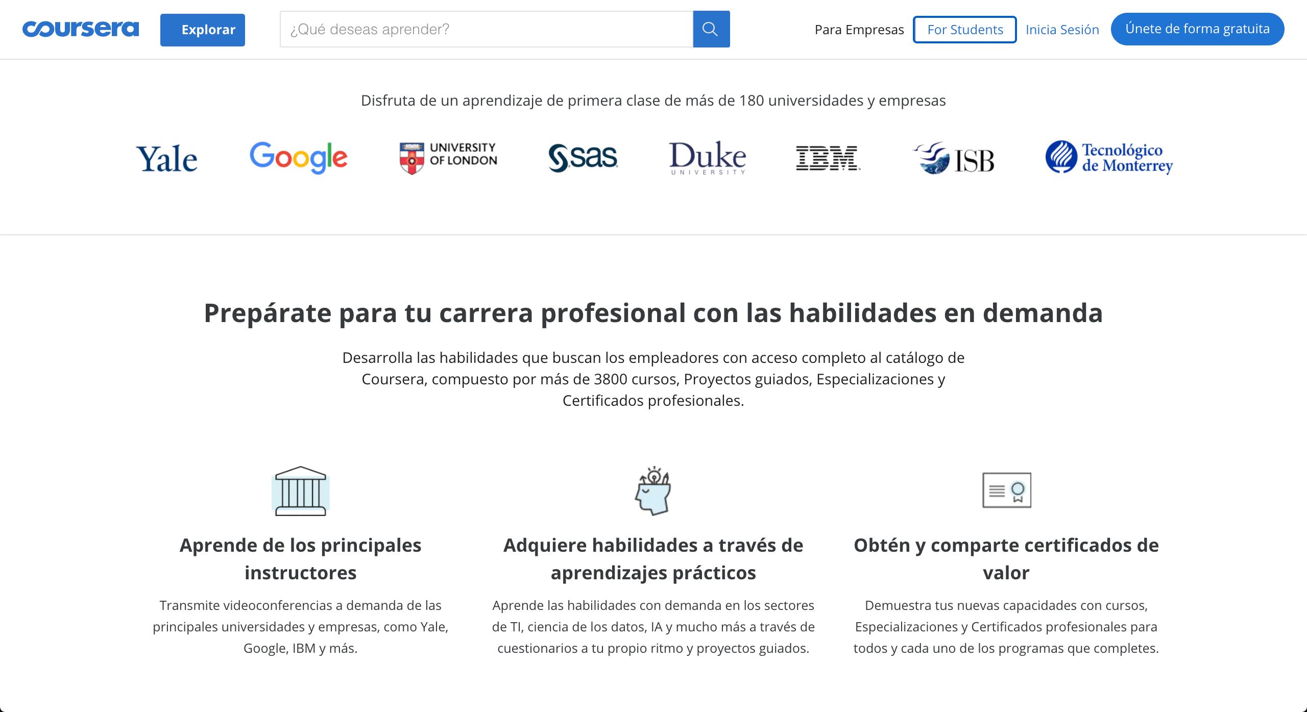 “Los ciudadanos tendrán acceso a cursos de las mejores universidades del mundo al igual que a programas, como el Certificado Profesional de Soporte de TI de Google, que prepara rápidamente a las personas sin conocimientos técnicos para trabajos en tecnologías de la información”, afirmó el representante de la plataforma.