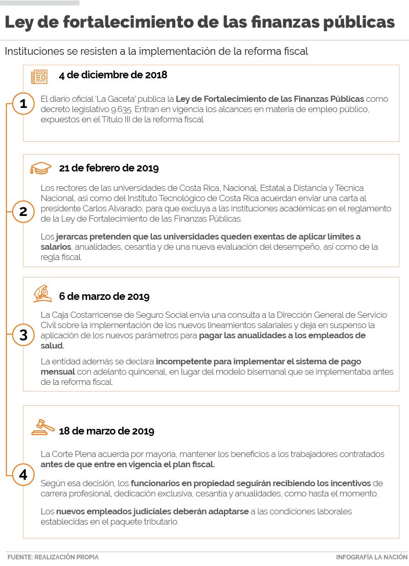 Sin embargo, casi cuatro meses después de aprobarse la reforma fiscal, hay órganos e entidades estatales que parecen no alinearse a la propuesta impulsada por el Gobierno y aprobada en la Asamblea Legislativa, a pesar de que el capítulo de empleo público entró en vigencia desde la aprobación del paquete tributario.