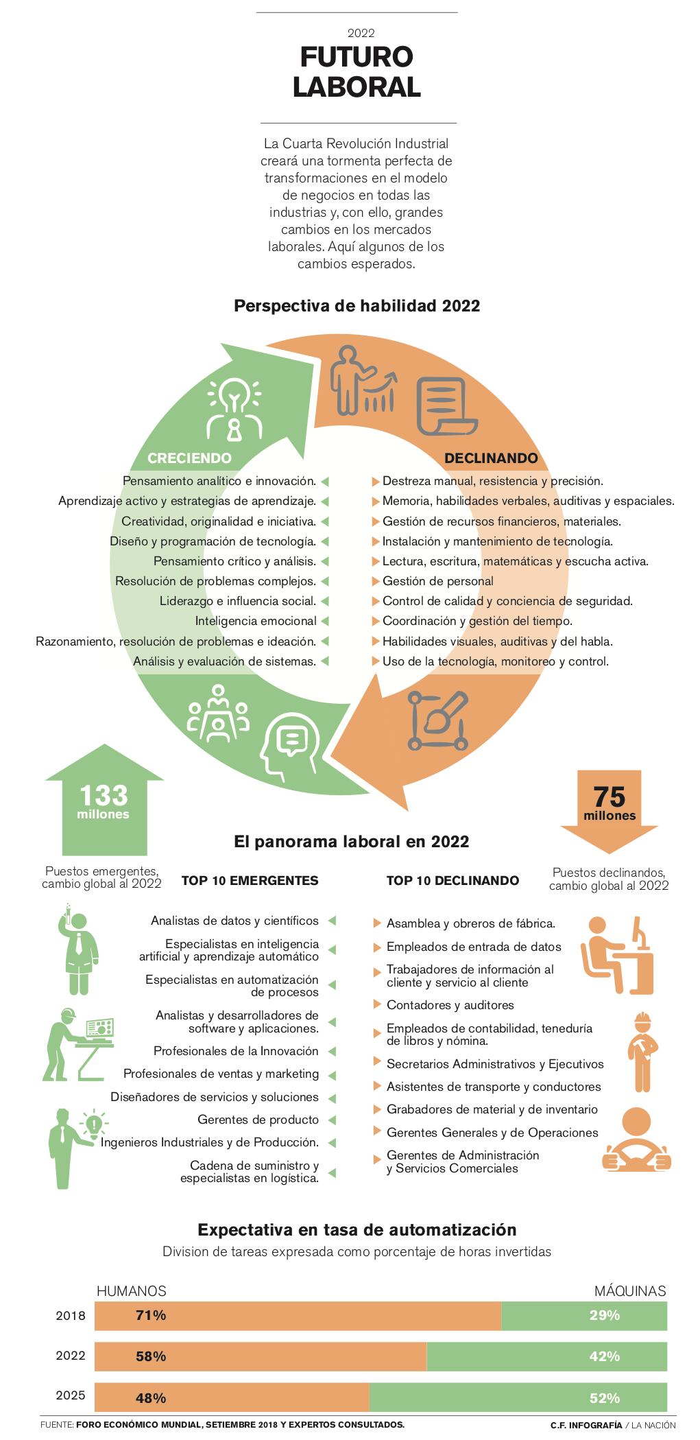En setiembre, el Foro Económico Mundial advirtió sobre algunos desafíos locales y mundiales en un amplio informe sobre el futuro del trabajo ante los avances en inteligencia artificial y la digitalización de labores.