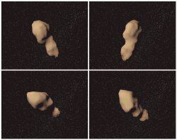 Tutatis , catalogado por la Unión Astronómica Internacional con el número 4.179 en la lista de cuerpos menores del Sistema Solar, tiene un diámetro de 4,6 kilómetros de largo por 2,4 kilómetros de ancho y tarda casi cuatro años en dar una vuelta al Sol.