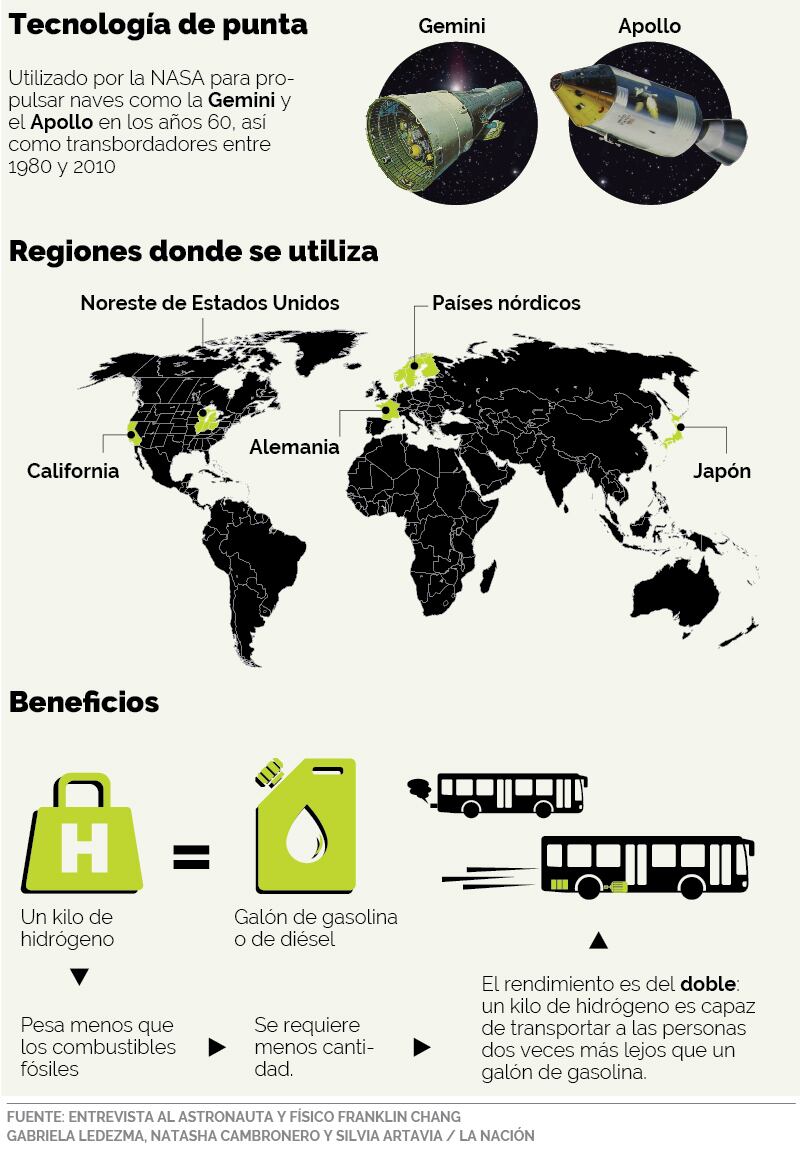 El científico Franklin Chang explica así que Costa Rica tiene todas las condiciones para ser un país pionero en la producción de hidrógeno como fuente de energía para el transporte, a fin de reducir las emisiones contaminantes del petróleo.
