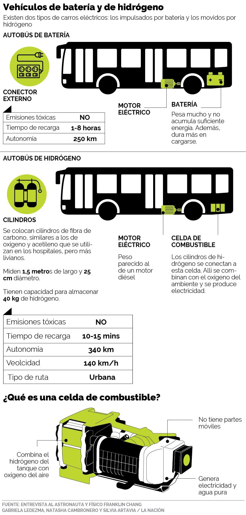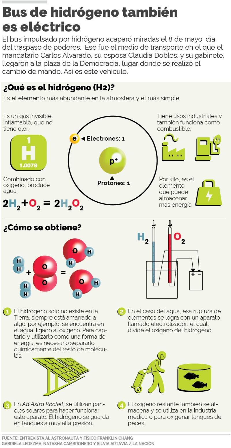 Sin embargo, el astronauta aboga por que Costa Rica comience a incluir autobuses de hidrógeno en su flotilla vehicular, mediante “pequeños microproyectos” como el que tiene su empresa Ad Astra Rocket, en Liberia, Guanacaste. El costo del hidrógeno, dijo, debería ser equivalente al del diésel.