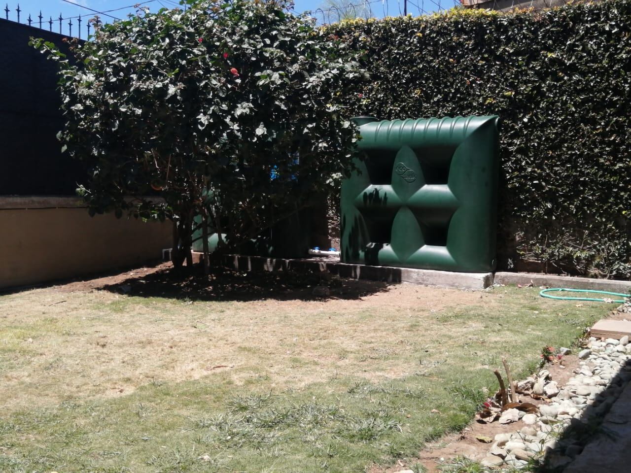 Este sistema recoge el agua de lluvia a través de las canoas, para luego dirigirla al tanque de almacenamiento. Dicho depósito cuenta con una bomba que envía el agua hacia los puntos habilitados. En este caso, a los tanques del servicio sanitario y a las tuberías del jardín.