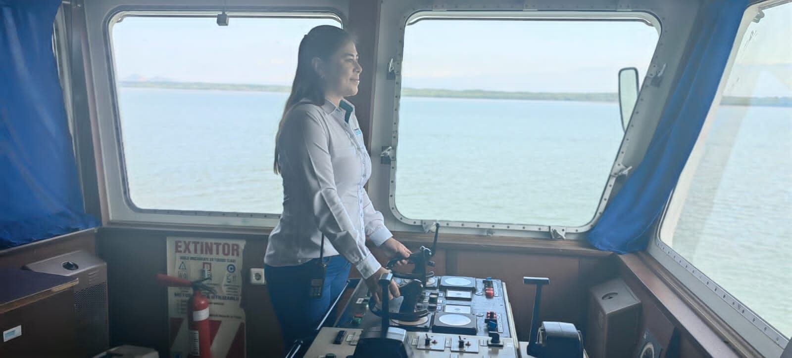 Maribel Brenes aseguró que sigue aprendiendo muchísimo y sabe que tiene compañeros capitanes con muchísimos años de experiencia, que conocen el barco como la palma de su mano, y de ellos aprende todos los días.