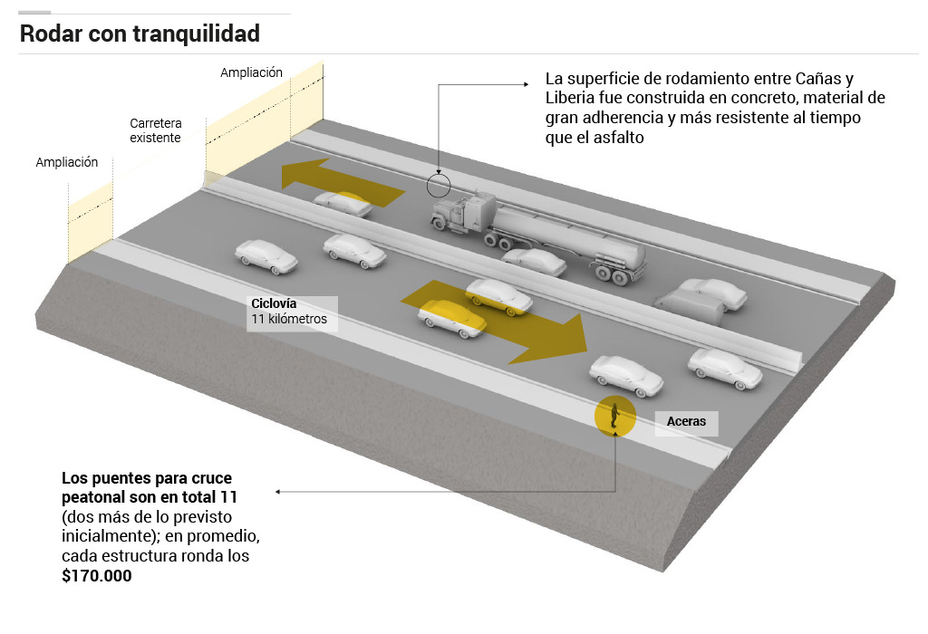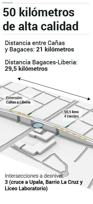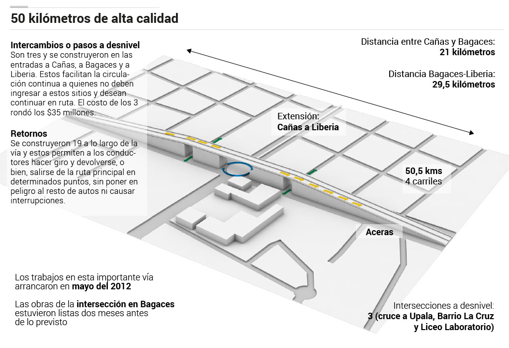 - Los intercambios (entrada y salida) de Bagaces y Cañas se modificaron para aumentar el tamaño del viaducto y así permitir mayor movimiento de automóviles en esos cantones.
