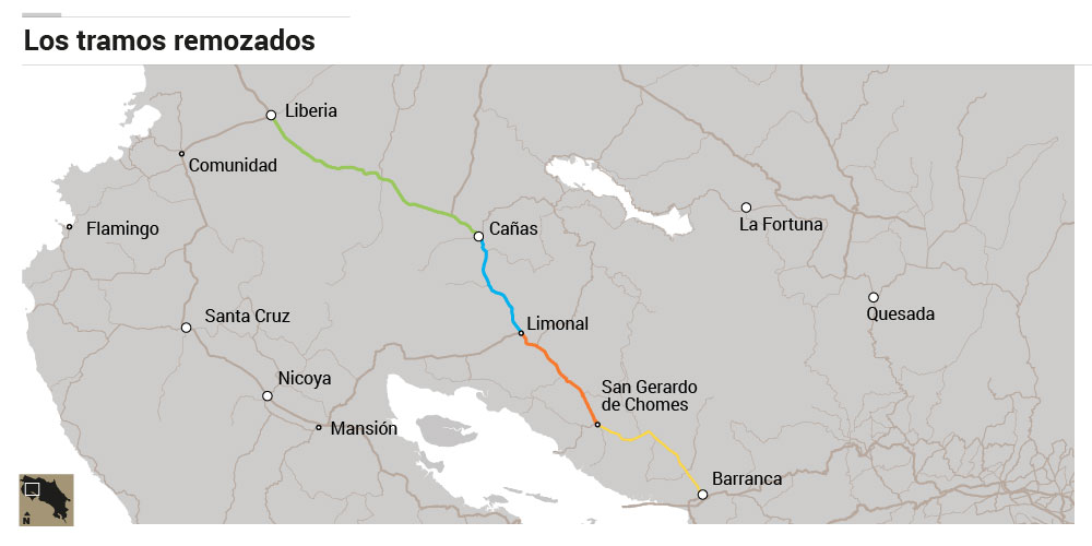 Los siguientes proyectos contemplarán la intervención de tres sectores: de Cañas hasta Limonal de Abangares, de Limonal hasta San Gerardo y desde este punto hasta Barranca de Puntarenas.