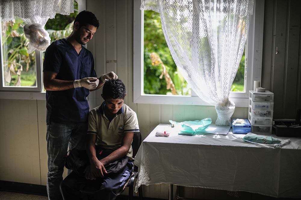 El lunes 23 de mayo, el médico Róger Rodríguez atendió a un joven estudiante del colegio de isla Chira, que se identificó solo como Ismael, y quien necesitó varios puntos en la cabeza tras sufrir un golpe.