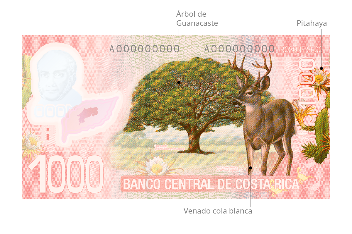 Motivo principal: árbol de Guanacaste, la pitahaya y el venado cola blanca.