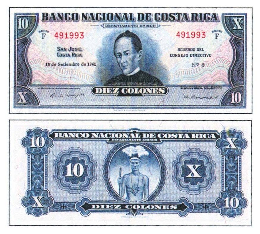 El BCCR inicia sus propias emisiones utilizando como base las fórmulas del Banco Nacional. En el anverso se imprime la imagen de un personaje histórico costarricense, mientras que en el reverso se ilustra una obra de este.