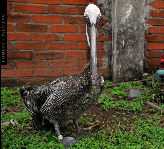 Es el residente más antiguo del Parque Marino del Pacífico, aunque su hábitat se ubica en Limón. A Homero le falta un ala.