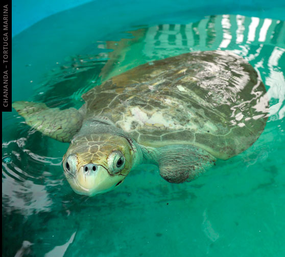 Esta tortuga tiene ocho años de vivir en el Parque Marino del Pacífico. Es oriunda de Limón y no puede volver a la naturaleza porque es ciega y le falta una de sus patitas.