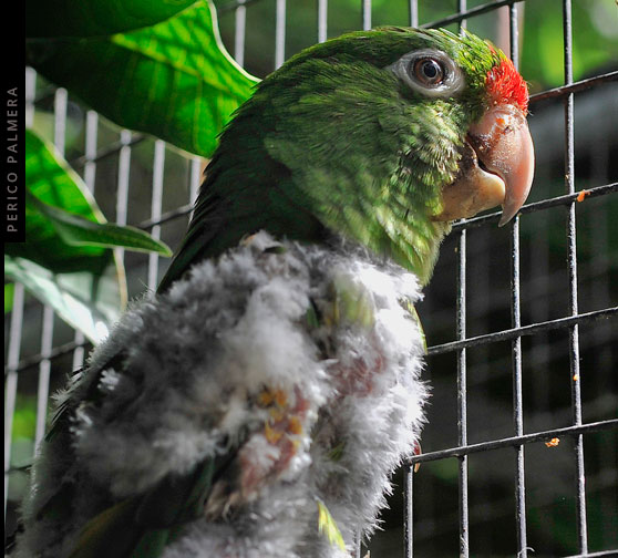 Al verse encerrado, este perico empezó a arrancarse las plumas por estrés. Al ser un comportamiento constante, como un tipo de tic, muchas veces termina arrancándose la piel. Se encuentra en la clínica de Zoo Ave.