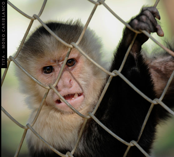 Separada de su tropa, Tita fue capturada para convertirla en mascota. Durante cuatro años vivió amarrada a un árbol. Cuando fue rescatada, algunos eslabones de la cadena se le habían incrustado en el cuello. Ahora solo le quedan las cicatrices.