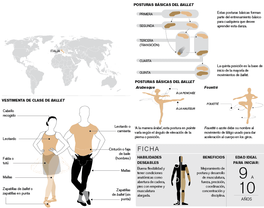 Es una danza clásica que nació en Italia durante la época del Renacimiento. Se basa en la estética y el control absoluto del cuerpo.