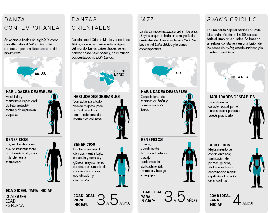Comunicarse a través del cuerpo ha sido una necesidad inherente al ser humano desde tiempos remotos. Bailar comenzó como un ritual, pero hoy se considera una disciplina con matices recreativos y deportivos. Los estilos se pueden clasificar en tres grandes categorías: clásicos, modernos y folclóricos.