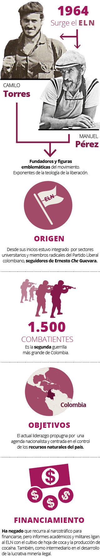 El Ejército de Liberación Nacional (ELN) nació inspirado en la Revolución cubana y marcado por una fuerte influencia religiosa.