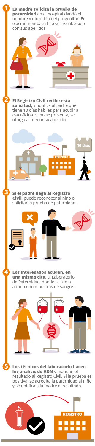 Las pruebas de ADN para determinar la paternidad se realizan comparando la secuencia de ADN del padre, del niño/niña y de la madre .