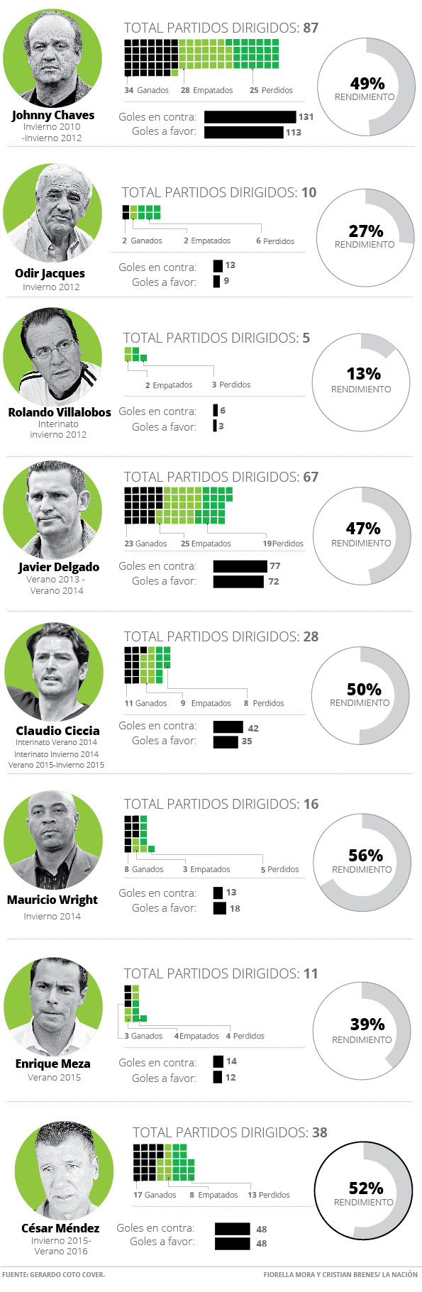 El banquillo de Cartaginés se convirtió en un lugar inestable para los entrenadores, ya que en los últimos doce torneos, se vivieron nueve cambios.