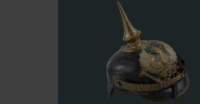 Este elegante casco del Estado Imperial alemán se caracterizaba por un “pincho” metálico en la parte superior. Este adorno se convirtió en un arma de doble filo para los soldados, pues sobresalía cuando estaban en las trincheras. Se disminuyó su uso en 1916.