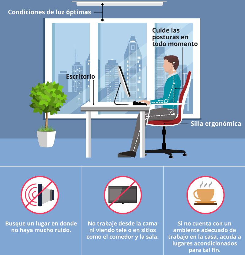 En la actualidad, existen diferentes modalidades de trabajo, por ejemplo, el teletrabajo, que hace referencia al trabajo en casa o fuera de la oficina y que ha venido en constante crecimiento. Este debe realizarse en la medida en que se cumplan con medidas de seguridad.