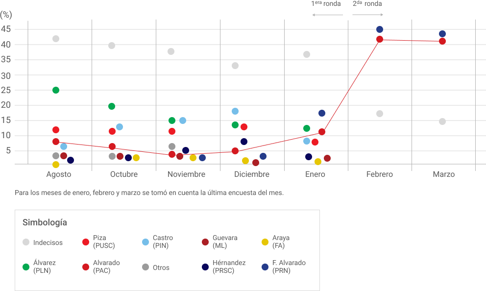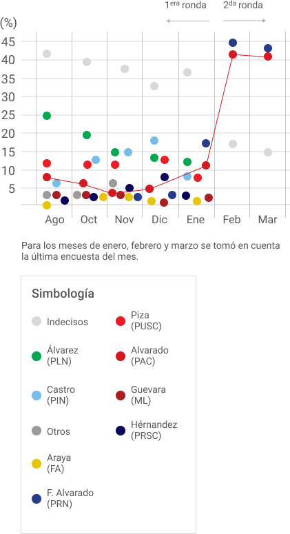 Resultados de encuestas publicadas por CIEP-UCR desde Agosto 2017 a Marzo 2018