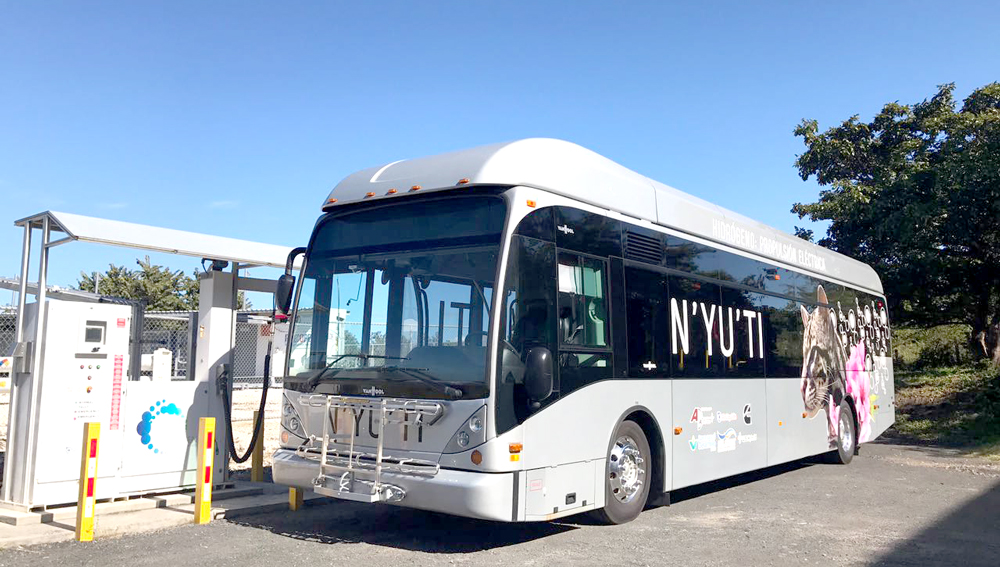 El autobús Nyuti, que es tecnología del 2010, posee una autonomía estimada de 400 km, pues es capaz de almacenar 40 kilogramos de hidrógeno en sus tanques. Para efectos de comparación con otras tecnologías eléctricas, estos 40 kilogramos de hidrógeno equivalen a un banco de baterías de 800 kWh, pero con menos de la mitad del peso que usando baterías de litio.