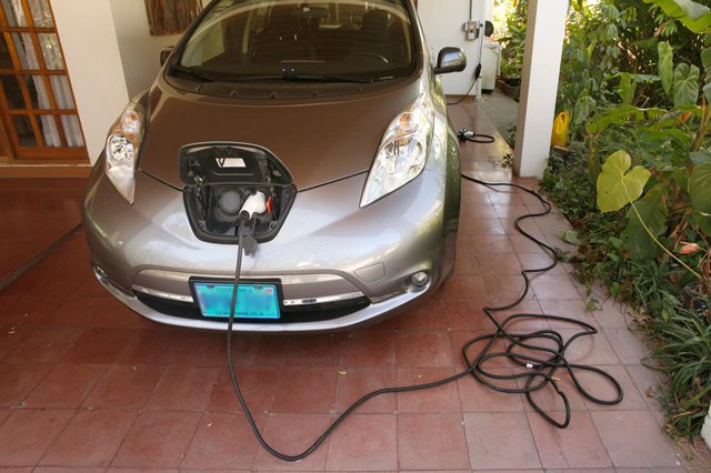 Los autos 100% eléctricos de batería se recargan en casa en tomas de corriente normales o en terminales de 220 voltios que pueden instalarse por aproximadamente $100. Foto: Albert Marín