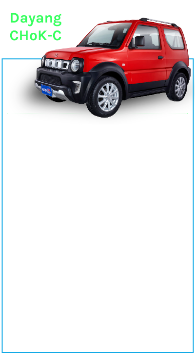 El carro utilitario que venden es el Dayang CHoK-C. Uno de estos obtuvo una de las primeras tres placas verdes para autos 100% eléctricos que dio el Registro a finales de febrero 2019.