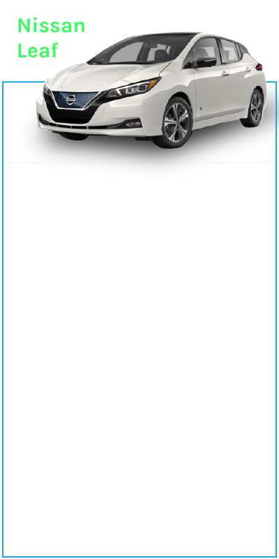 E-Cars está especializada en Nissan Leaf en tres versiones: S (básica), SV (intermedia con algunas extras) y SL (full extras). Los precios de estos rondan entre los $18.000 y los $22.000.