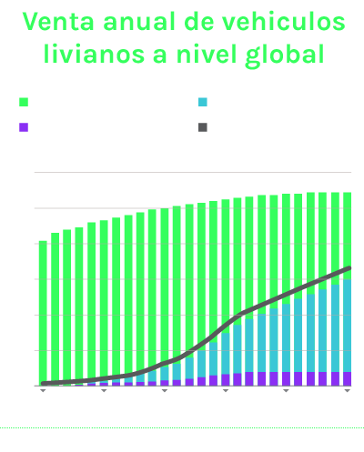 Bloomberg, la compañía de software financiero, noticias y datos económicos, prevé que para el año 2040 el 55% de la venta mundial de automóviles de pasajeros utilitarios serán eléctricos, con una clara mayoría de 100% eléctricos y una minoría de híbridos enchufables.