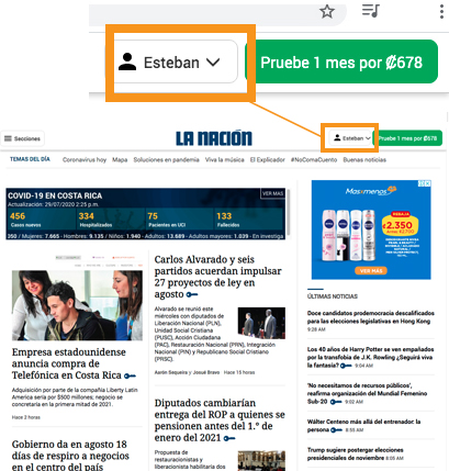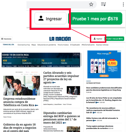 Debe hacer ingresar a www.nacion.com y hacer clic en la parte superior derecha, donde se indica Ingresar: