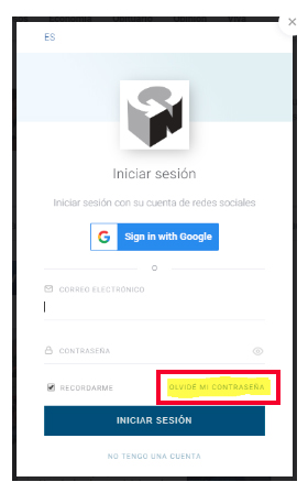 1. Para resetear su contraseña debe hacer click en OLVIDÉ MI CONTRASEÑA