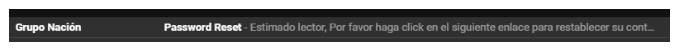 4. Localice en su bandeja de correo el email enviado con el asunto Password Reset. Si no lo encuentra en su bandeja de entrada puede revisar también la bandeja de SPAM.